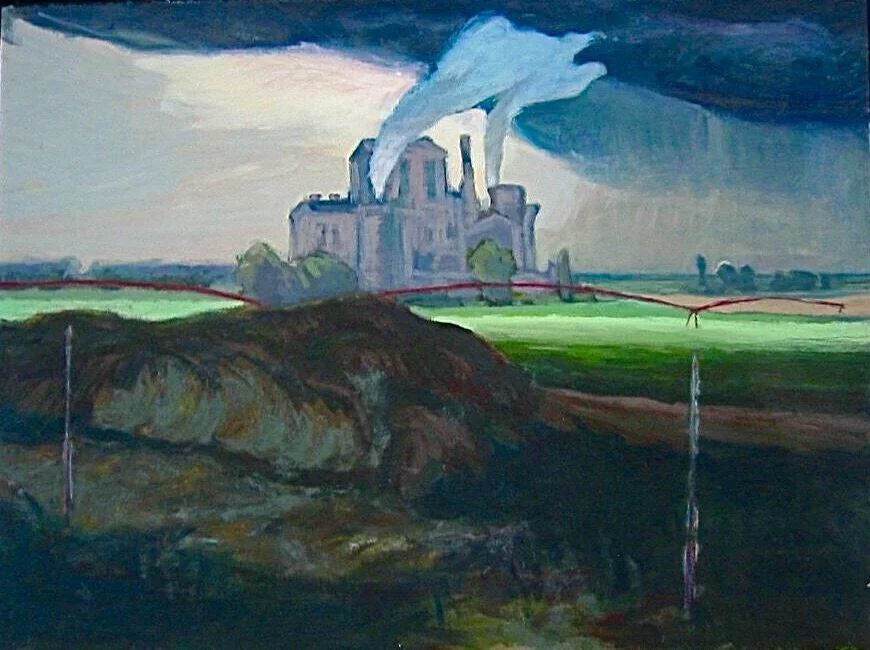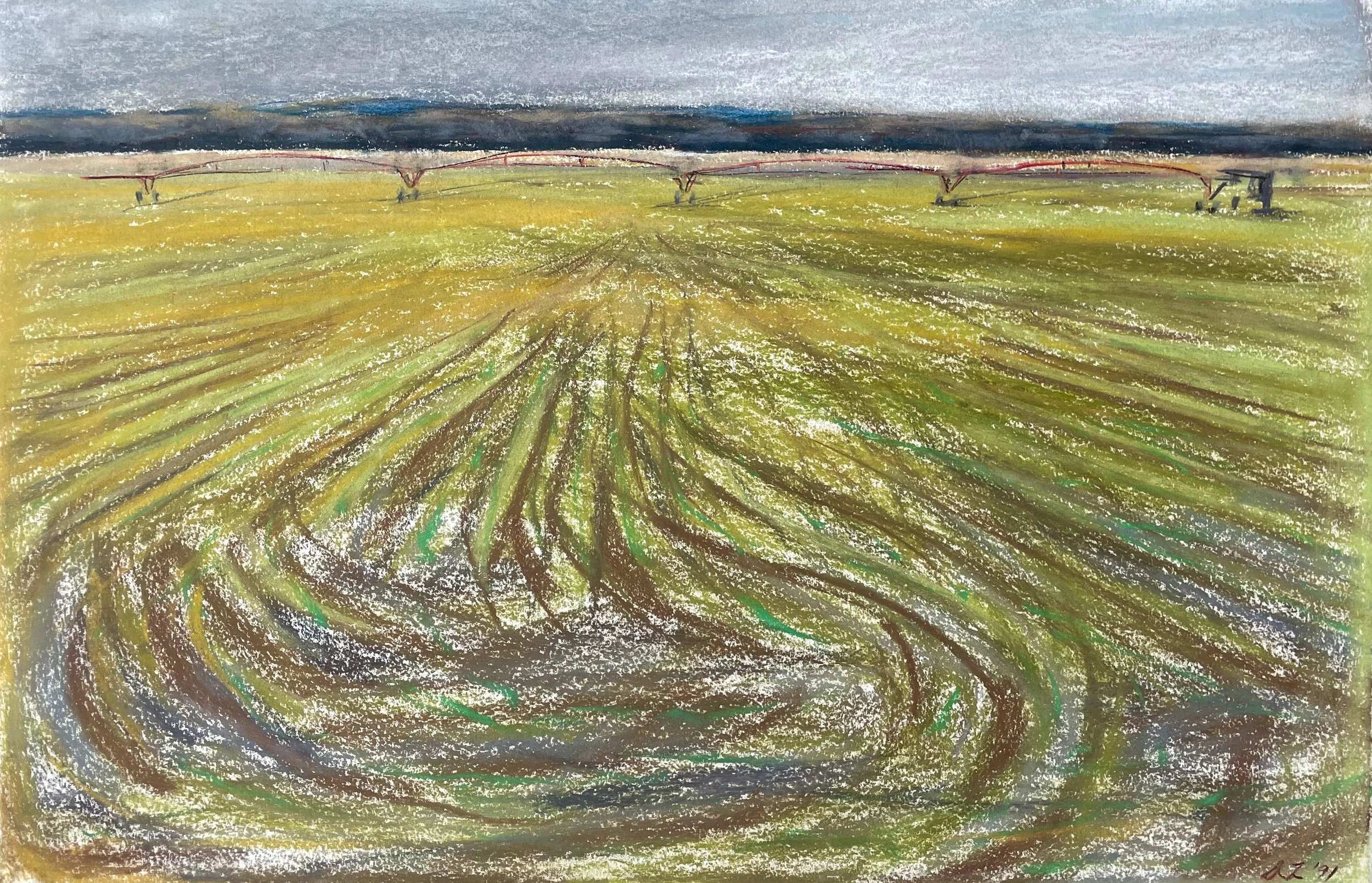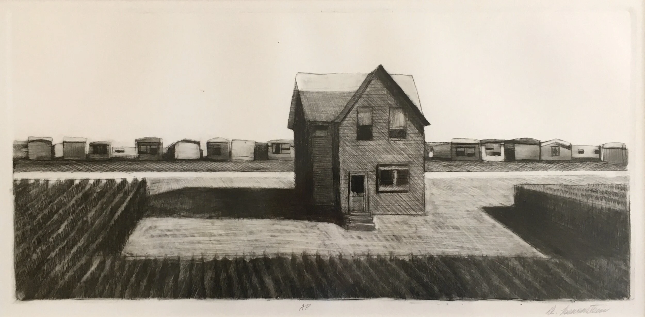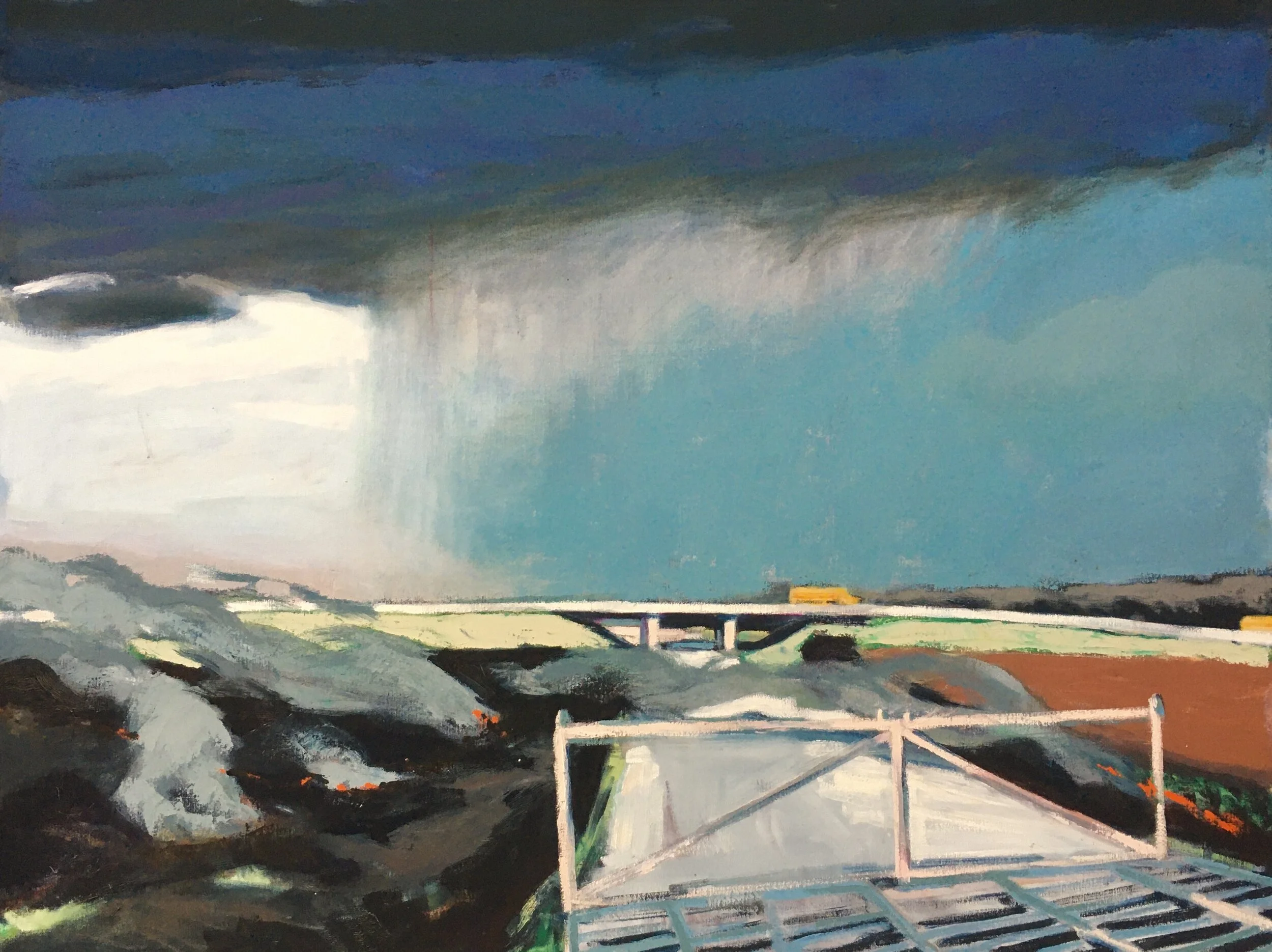Before I made murals and posters, back when I was searching for a way to be an artist in the world, I made landscapes. Initially they were all from life, later they came as much from my imagination as they did actual places. Inspired by mentors Bobbie Mckibbin and Al Pounders, and later influenced by darker visions of the family farm crisis, I found a way to connect with places I had never known growing up on the north side of Chicago. This work began in 1988 and continued through graduate school, first at Purdue and then, after a life changing apprenticeship at Rose Valley Farm near Rochester, NY, at the University of Kansas until 1992.