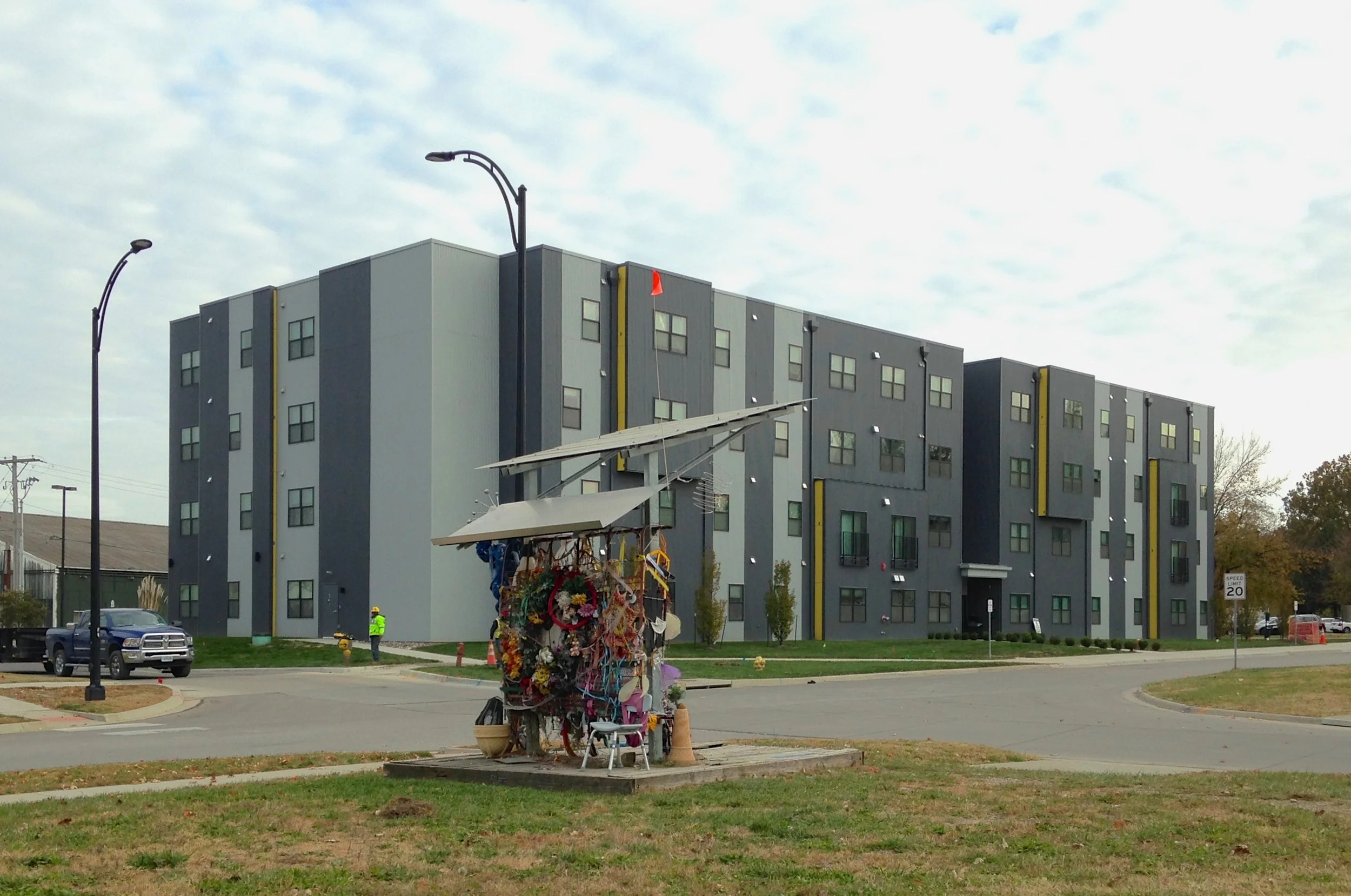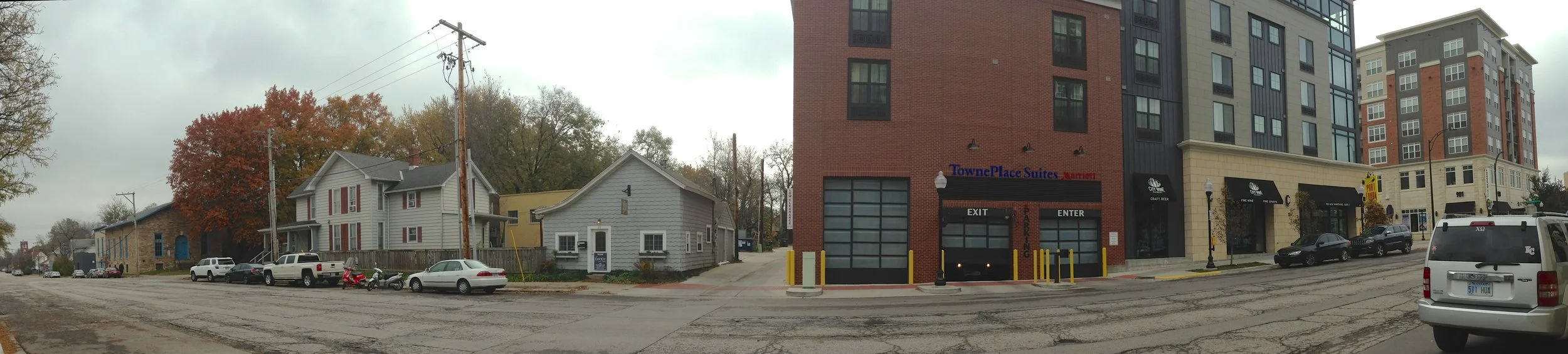 My son and I were able to walk this route because there’s a lull in construction. The alley had been closed for months, the one where the dumpster I profiled in the Give Take Give project is, and the one adjacent to the Pollinators mural I helped create at Farmers Market. In the last few years, this two-block stretch of New Hampshire St. has been transformed. There are more than one hundred new upscale apartments, a rooftop pool, a Marriott Extended Stay hotel, an expensive wine shop, and a foodie bistro. Looking west from Rhode Island Street, this wall of new five to eight story buildings looms over the houses below them, and stands as a visual and psychological divide between downtown and East Lawrence - on one side, a burgeoning neo-yuppie enclave, on the other side, a historic working-class neighborhood.