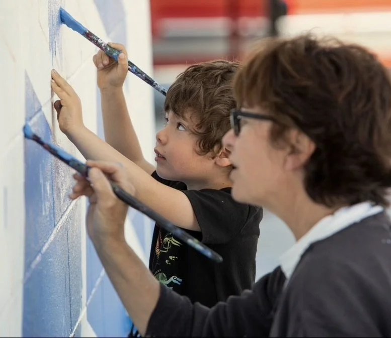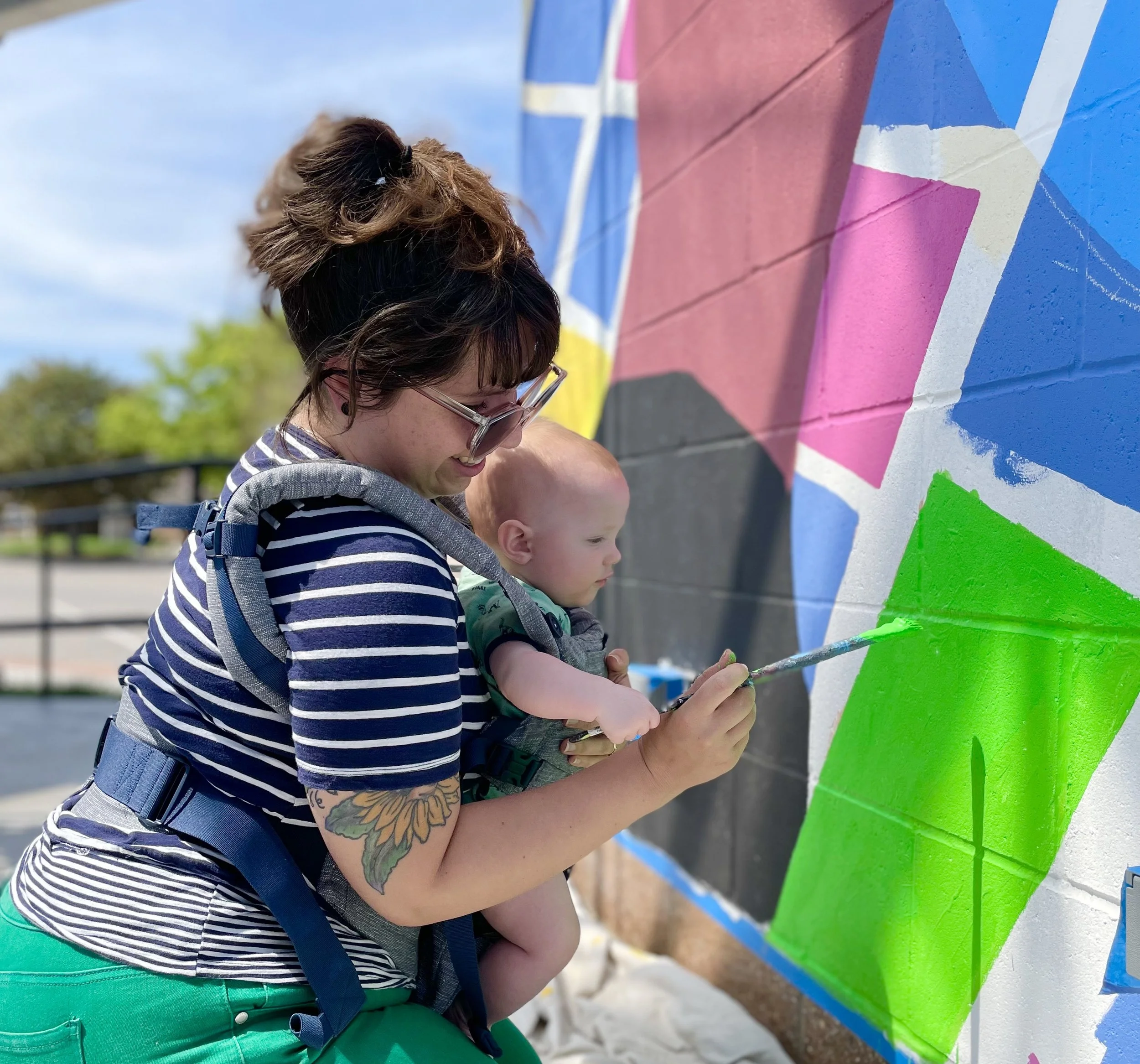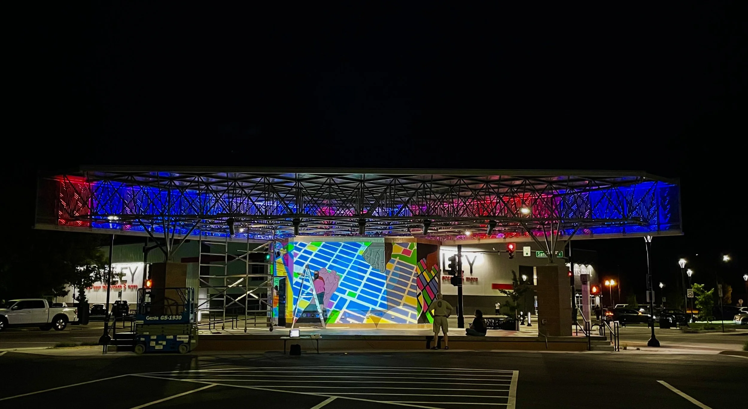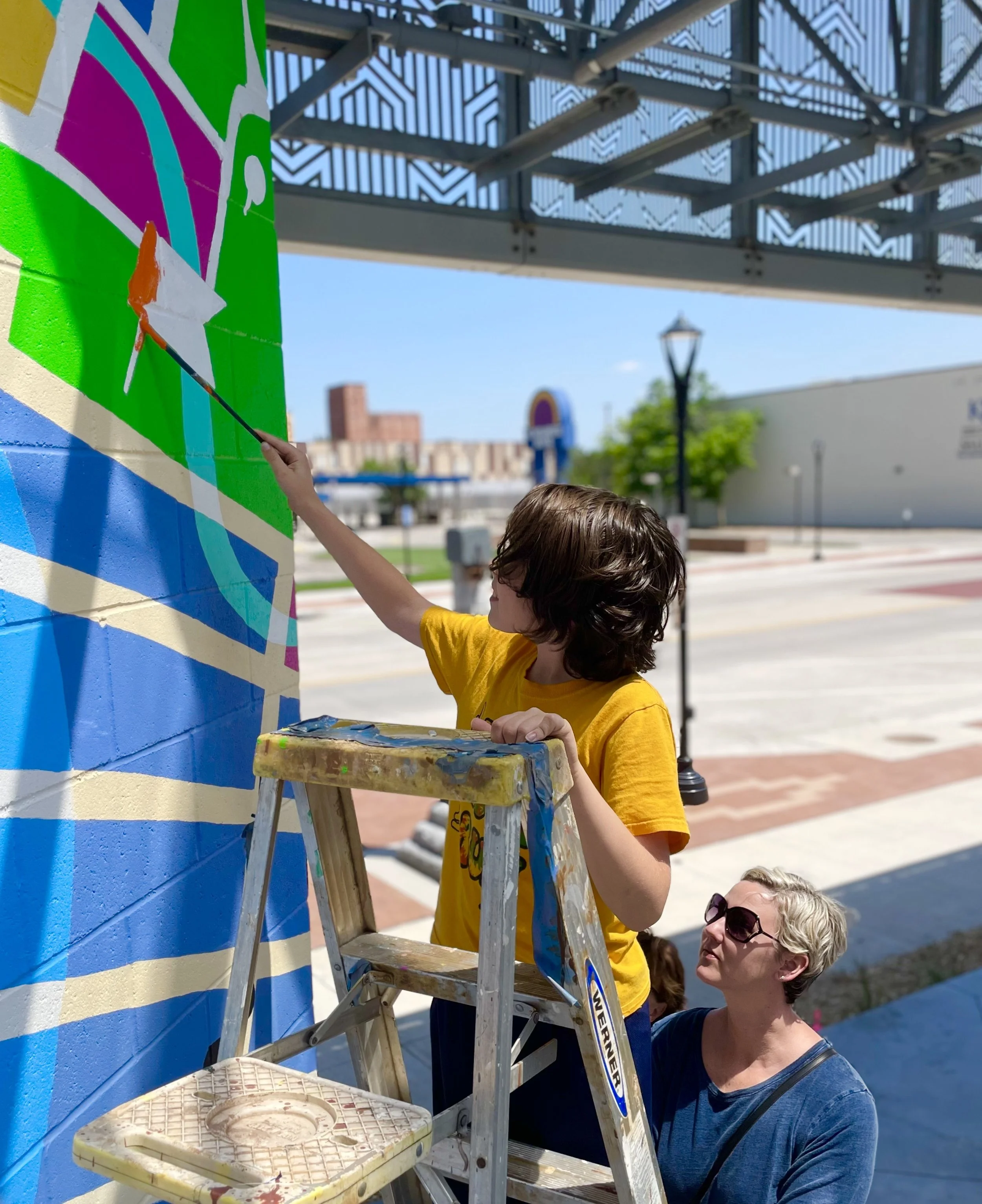 Community workshops, where participants mapped their memories, dreams and personal geographies, inspired this mural for the outdoor stage at Santa Fe and Ash. It was created a few months after the mural I led in 2010, Waiting in the Wings, was removed at a location a few blocks away (look for a reference to that mural inside the “doorway” within the new one). Many thanks to mural assistant, Karla Prickett and the many volunteers who helped us paint. The project was supported by Salina Arts and Humanities and the Kansas Creative Arts Industries Commission.