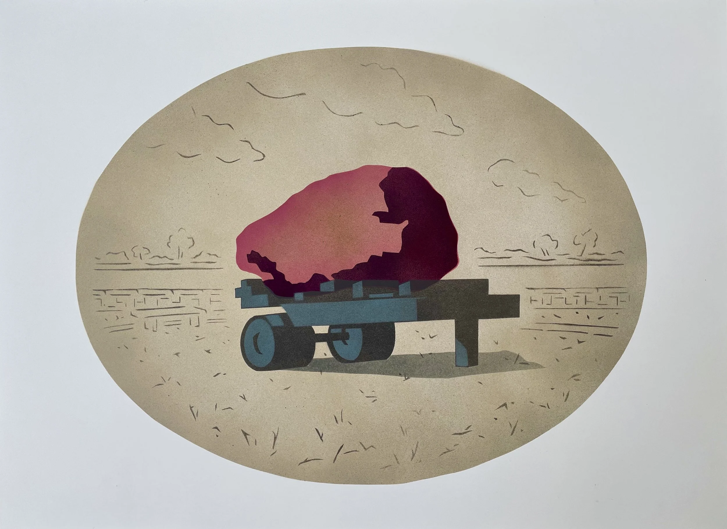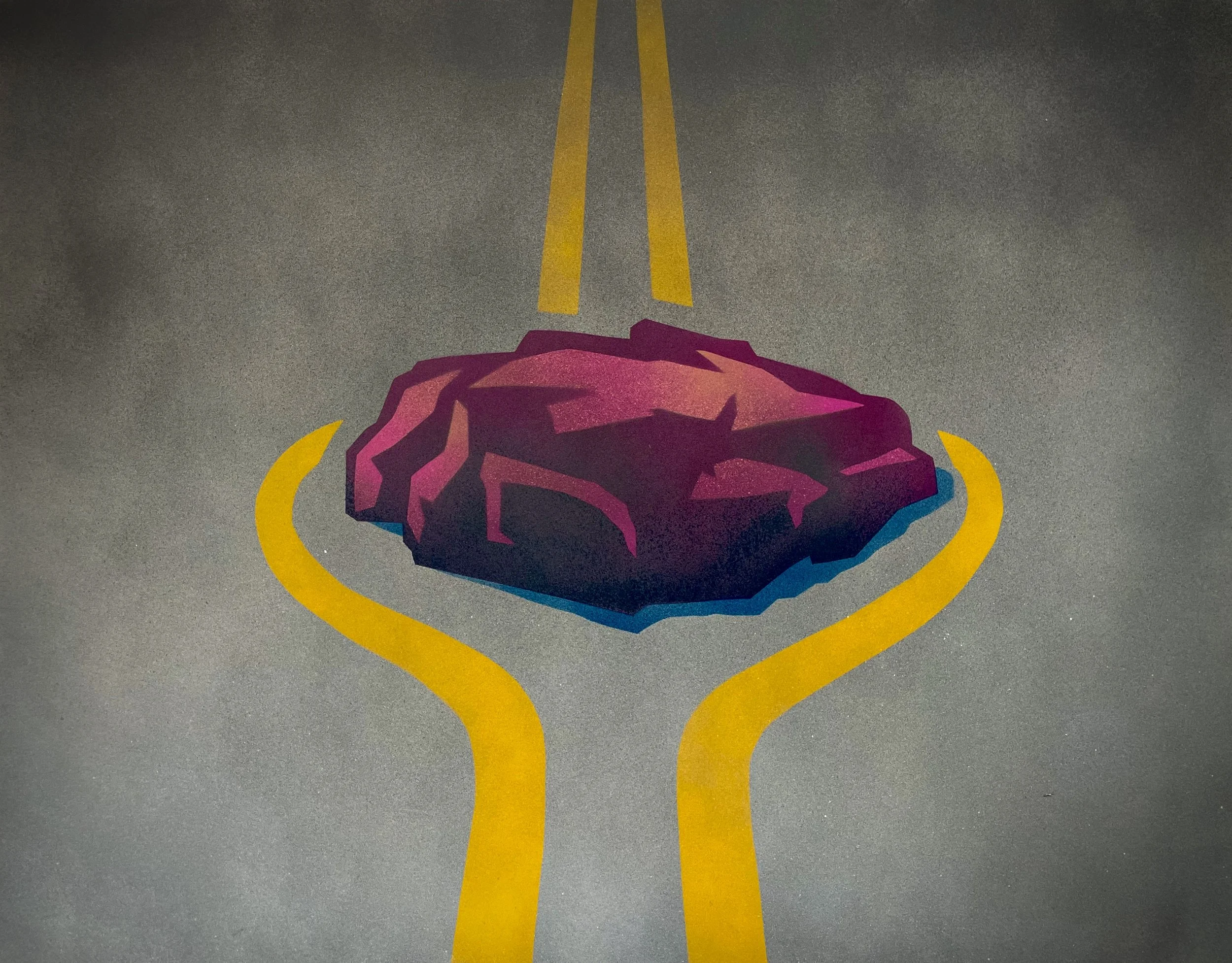 A series of spraypaint stencils on paper documenting the monumentalization of glacial erratics in Northeast Kansas. I wrote about the inspiration for the series here, and a limited edition portfolio of this series is available here.