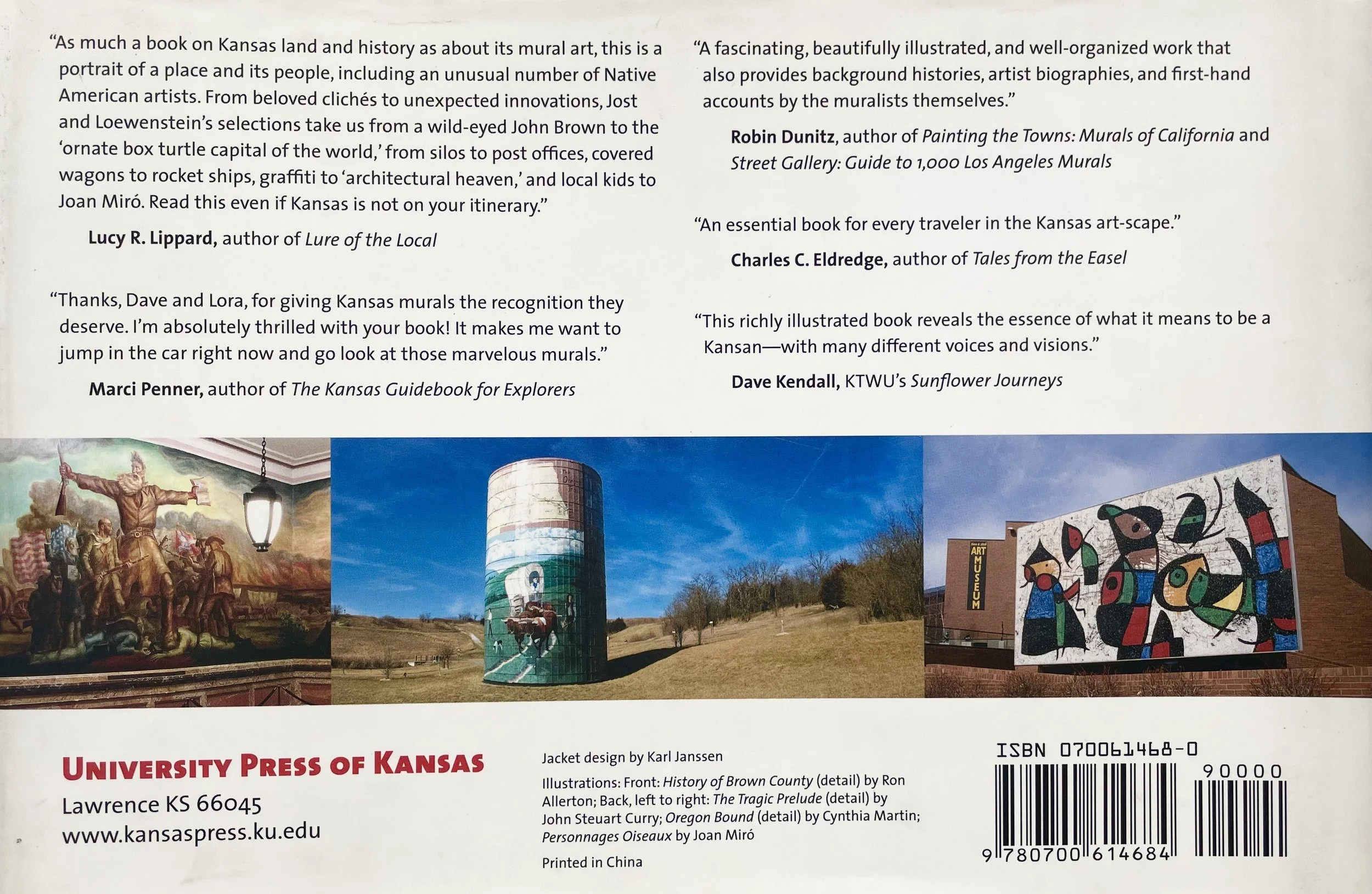 Off we went, for nearly five years researching, photographing and writing. (We also had to find a publisher). Along the way we met hundreds of artists and citizen historians, passionate about their home towns and the murals that told their stories. It was an incredible journey and education. I am grateful to Lora, photographer Edward Robison III, Saralyn Reece Hardy and the folks at the University Press of Kansas who took a chance with us first time authors. Here’s where you can get your own copy.
