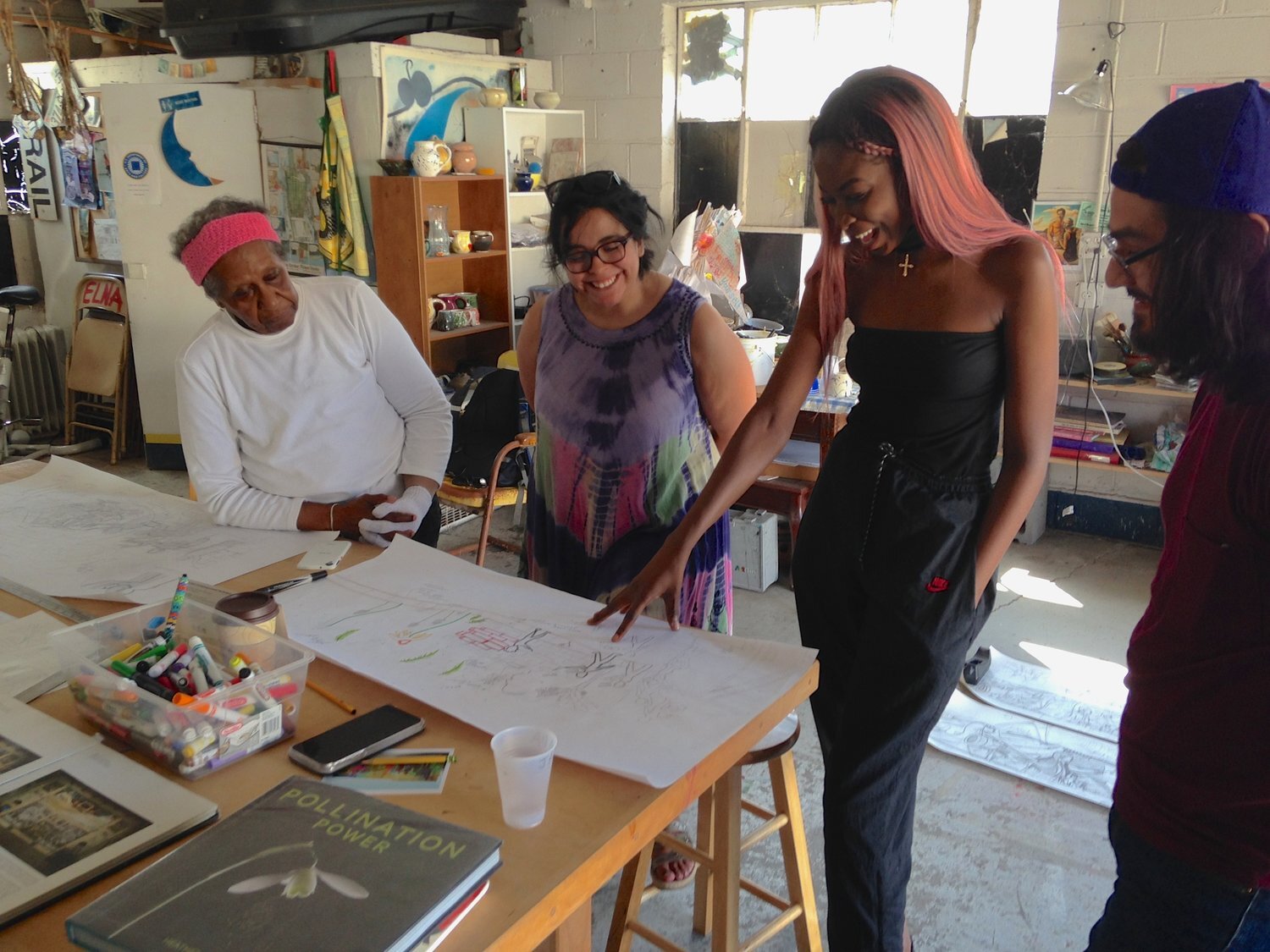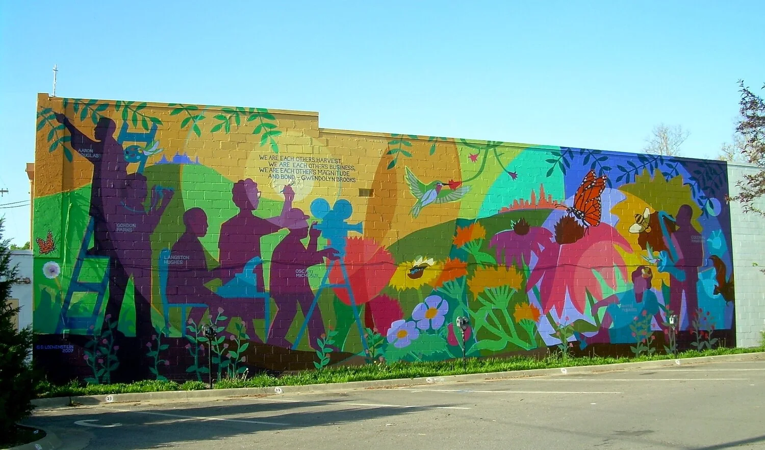 Commissioned by the Spencer Museum of Art in conjunction with the exhibition Aaron Douglas: African American Modernist, the mural designers employed pollination as a metaphor to connect the contributions of great African-American artists from Kansas with the Lawrence Farmers Market where the mural was located. Aaron Douglas, a Topeka native who became the foremost visual artist of the Harlem Renaissance in New York City is one of the seven artists included in the mural along with Gordon Parks, Gwendolyn Brooks, Langston Hughes, Oscar Micheaux, Hattie McDaniel, and Coleman Hawkins. The mural was designed and painted by University of Kansas students, local youth, and community members.