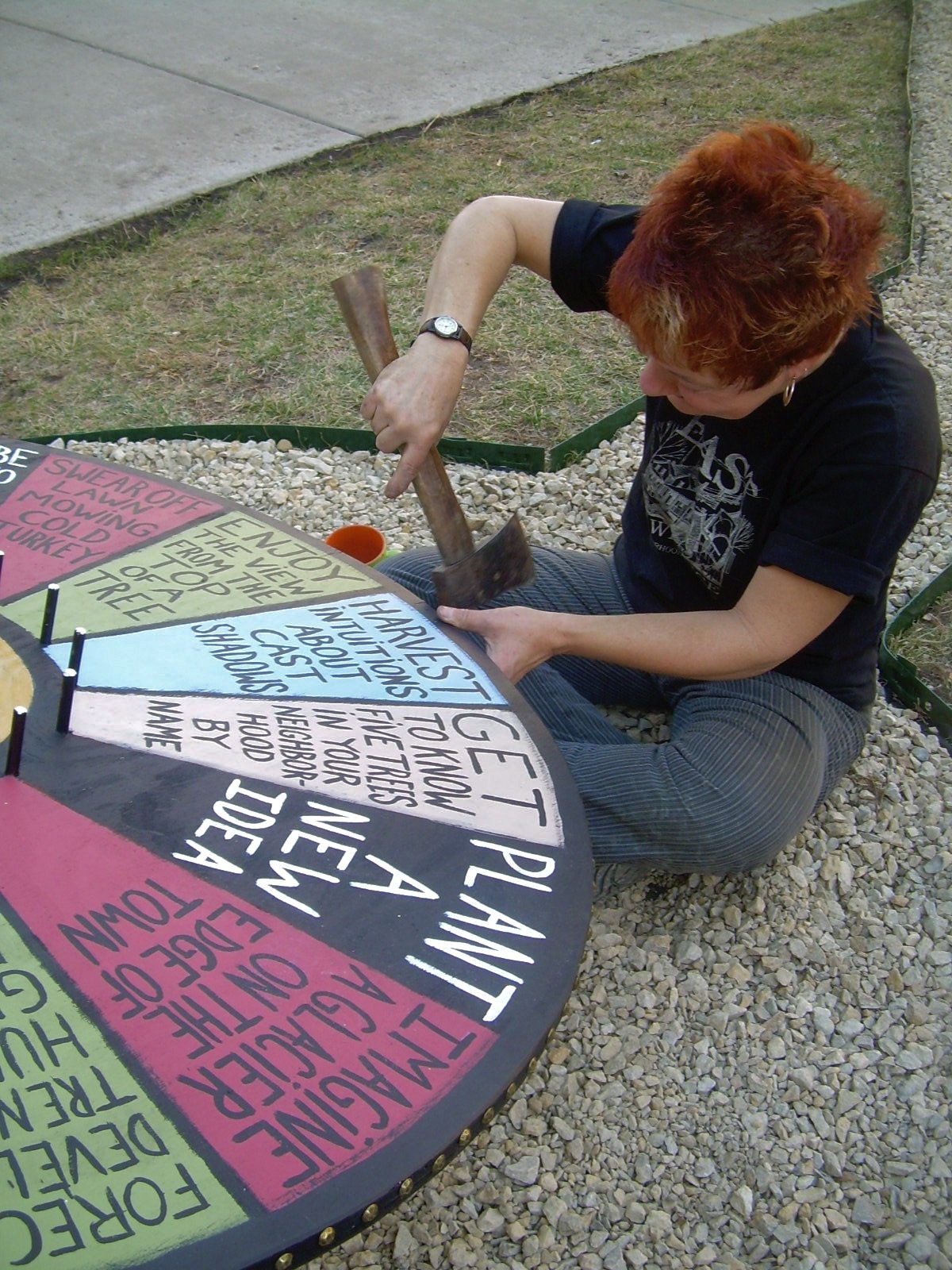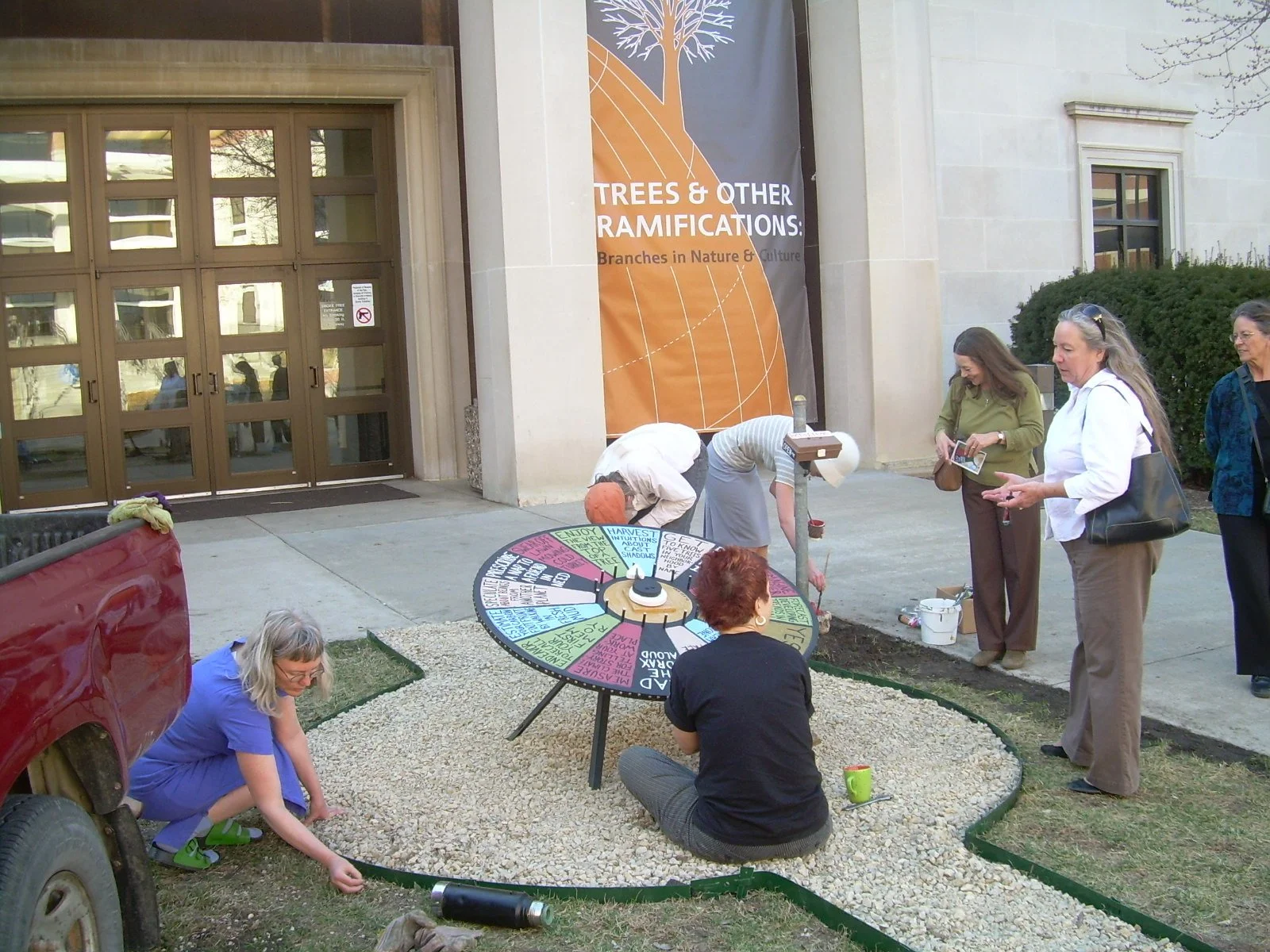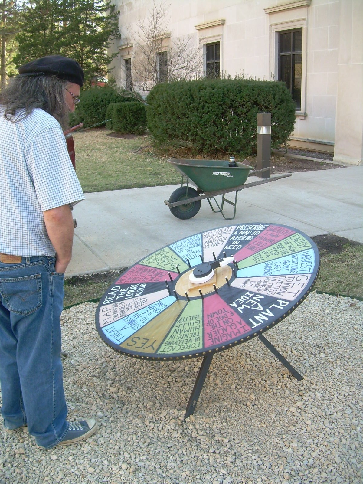 Most of us, I imagine, feel the desire to take a chance and cast our fortunes to the fates every now and then. To always be in control of our decisions leaves no room for those unseen forces we need invoke when life takes unexpected turns. With this in mind, my friend Eric Farnsworth and I along with the help of the Percolators made the Wheel of Willing Diversion in 2009 for the outdoor entryway to the Spencer Museum of Art.